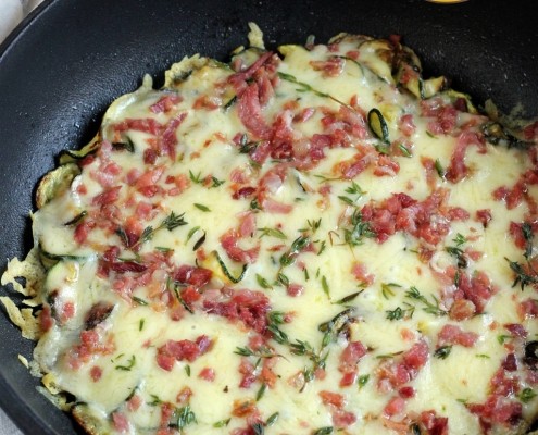 Te traemos una deliciosa receta de calabacín con Quesos Abadía de Los Toldos y jamón.